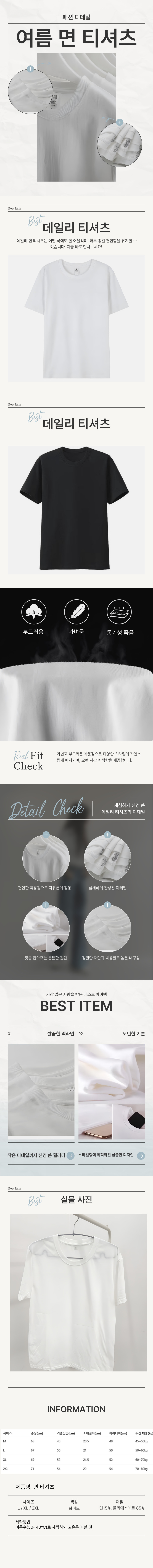 남녀공용 20수 순면 반팔티 기본 흰티 데일리 티셔츠